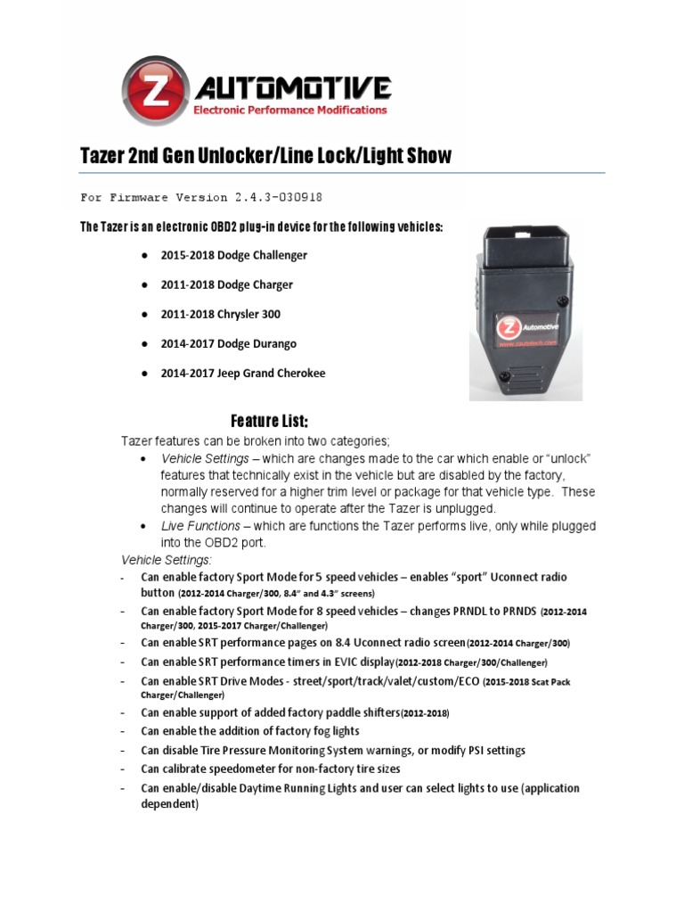 Zautotech Tazer Software Drivers And Hardware Install Zautomotive Com Youtube from i.ytimg.com These changes will continue to operate after the tazer jl lite is unplugged. Tazer jl lite features can be broken into two categories;